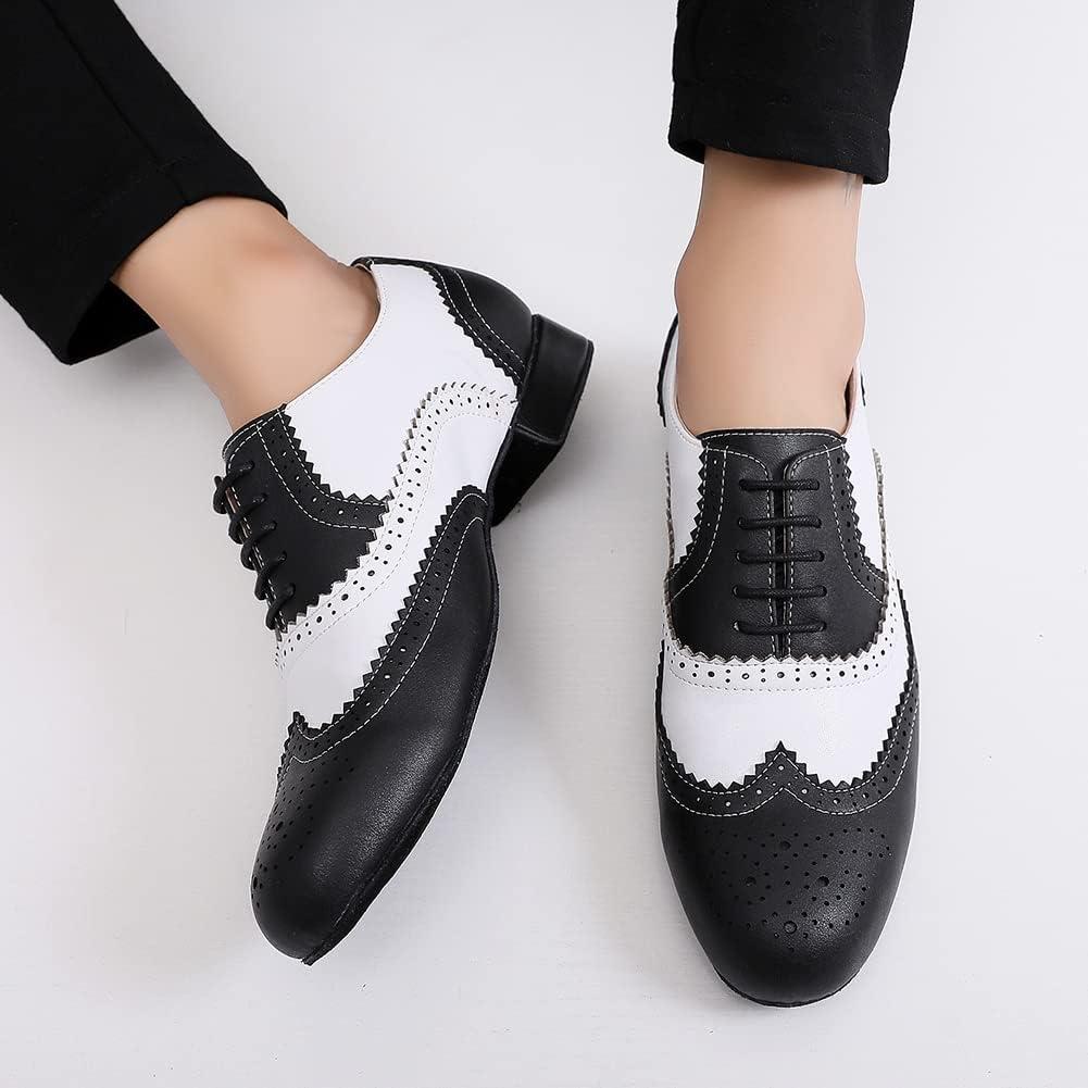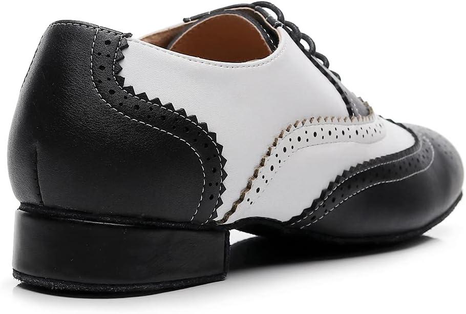 JUODVMP Mens Latin Dance Shoes Breathable 1″ Standard Heel Leather Ballroom Tango Dancing Shoes Model 401(Black-lhd-stw-suede Sole)