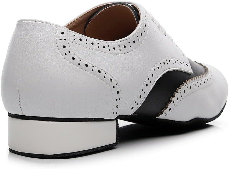 Save up to 40% on JUODVMP Mens Latin Dance Shoes Breathable 1" Standard Heel Leather Ballroom Tango Dancing Shoes Model 401(Qjw9012-white-suede Full Sole) styles during our end-of-season sale.