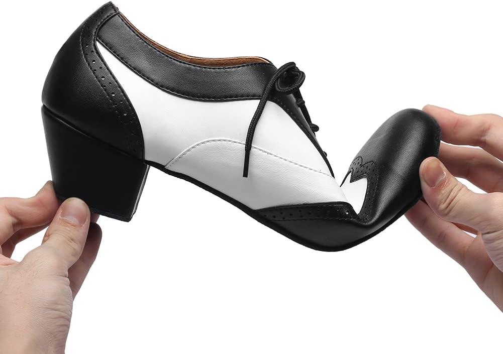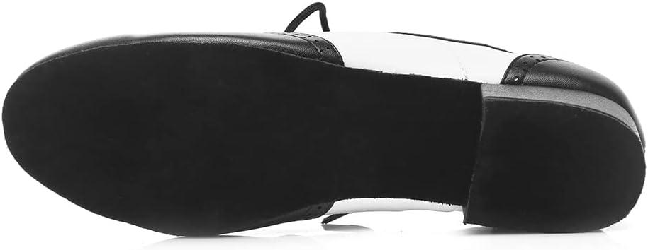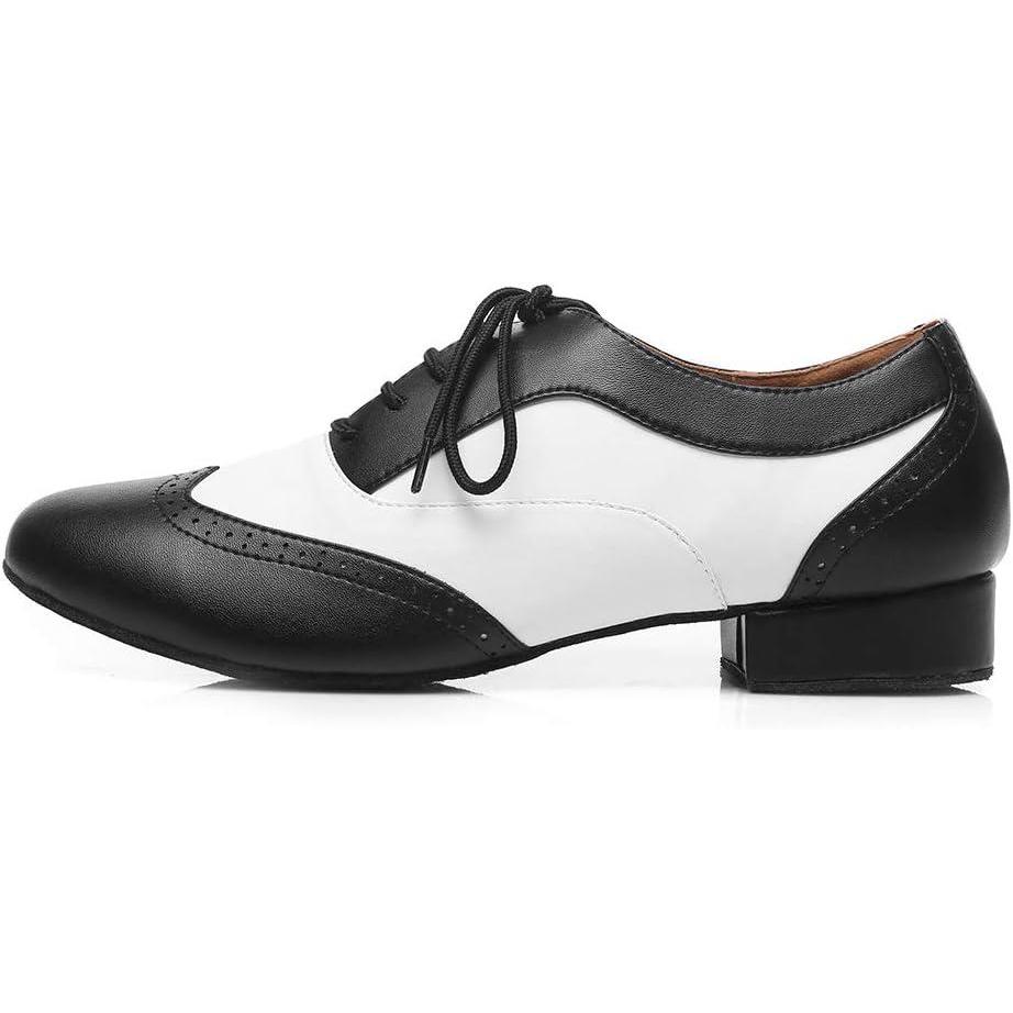 JUODVMP Mens Latin Dance Shoes Breathable 1″ Standard Heel Leather Ballroom Tango Dancing Shoes Model 401(Black-lhd-stw-suede Sole)