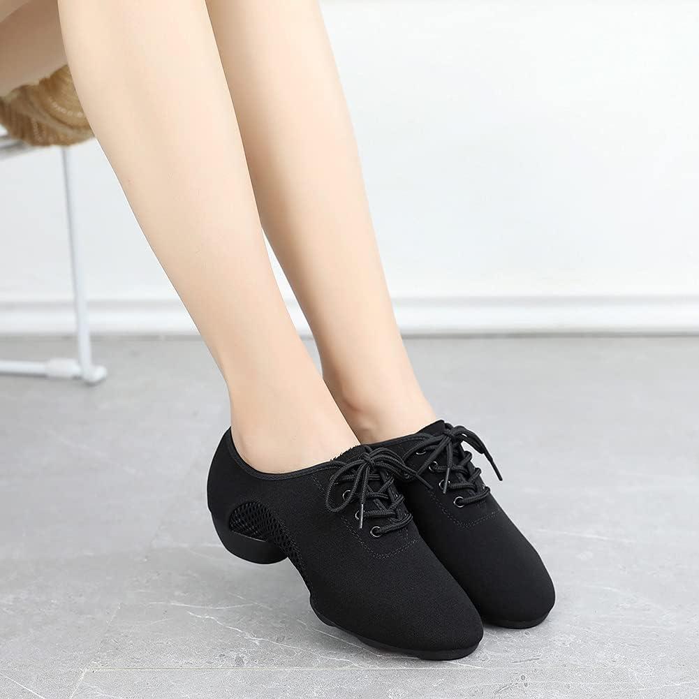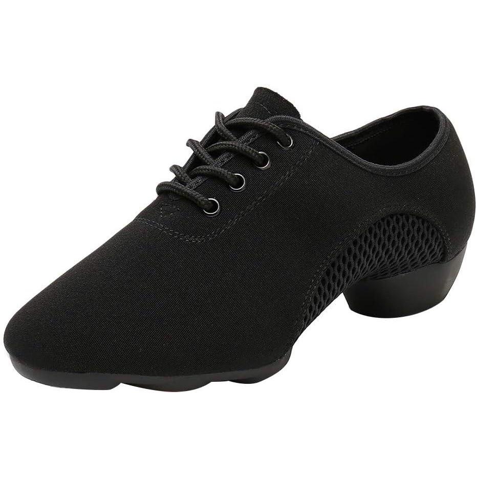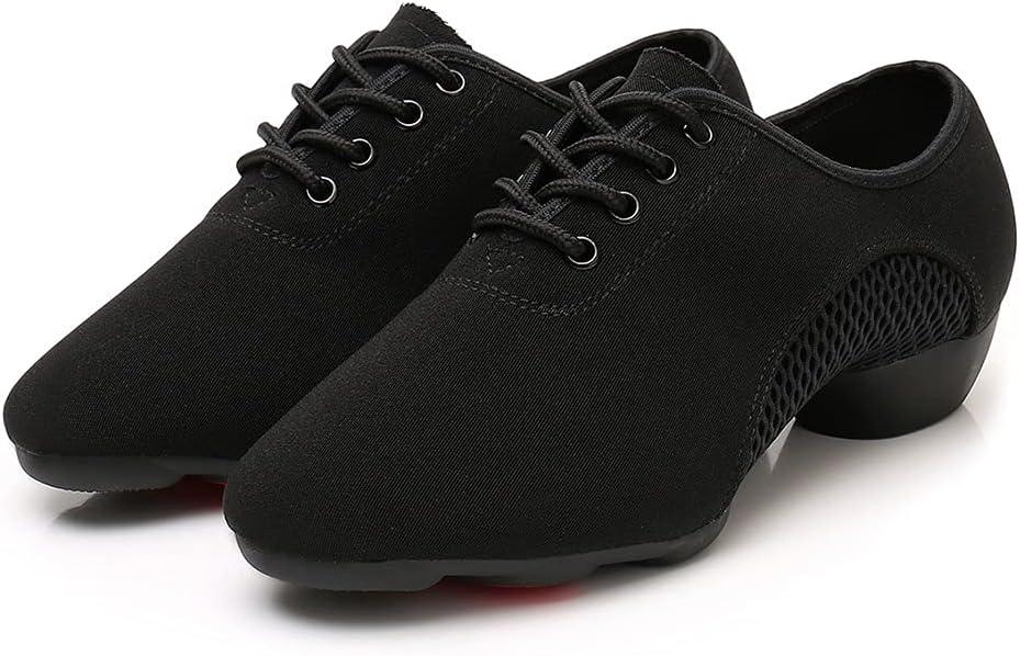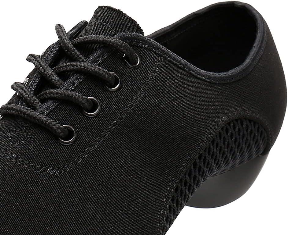 JUODVMP Women & Men Latin Dance Shoes Practice Tie Up Closed Toe Standard Ballroom Teaching Performance Dance Shoes,Model LHD-NJB(Black-2j-3.5-2805-syjd)