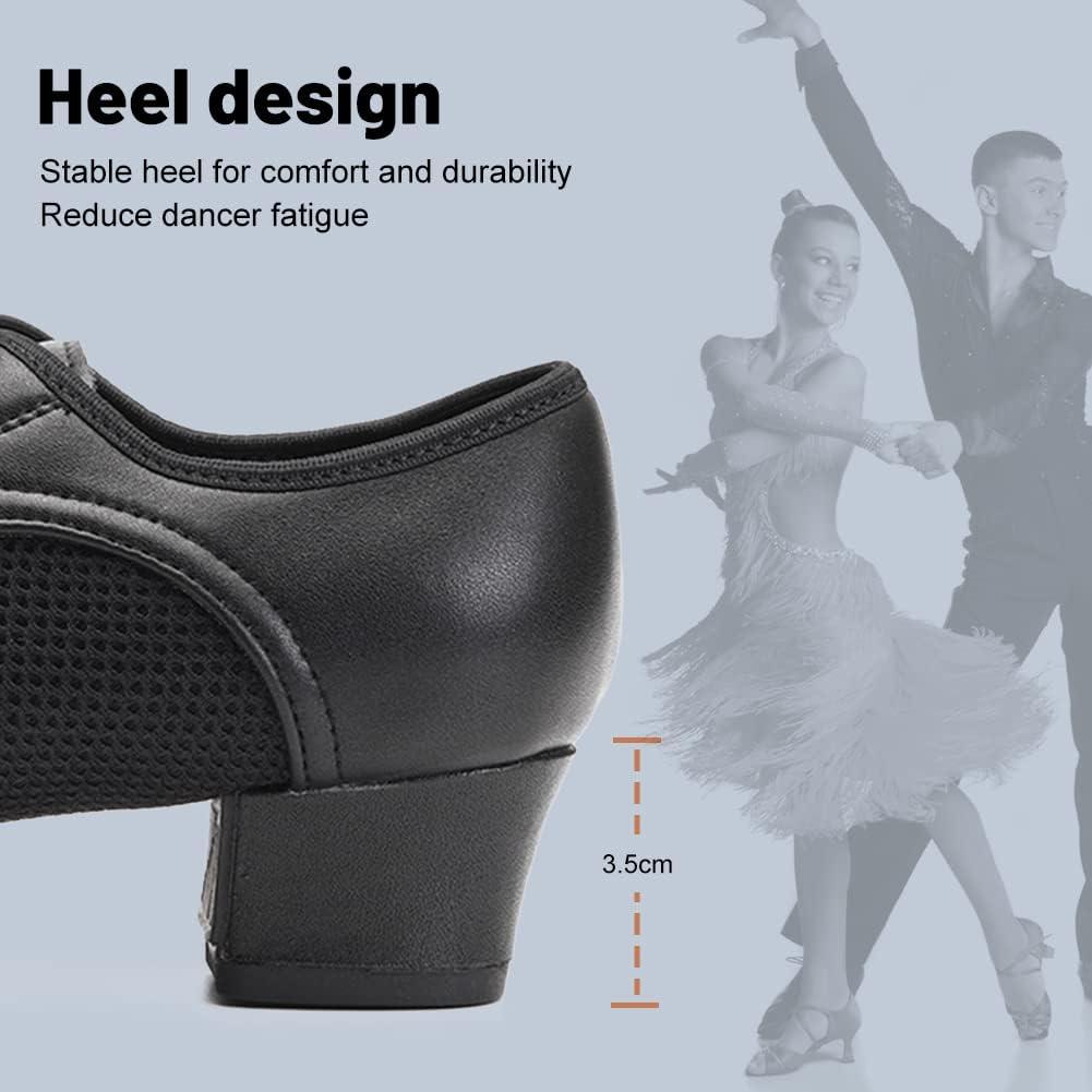 JUODVMP Women & Men Latin Dance Shoes Practice Tie Up Closed Toe Standard Ballroom Teaching Performance Dance Shoes,Model LHD-NJB(Black-3.5cm-suede Full Sole-2805)