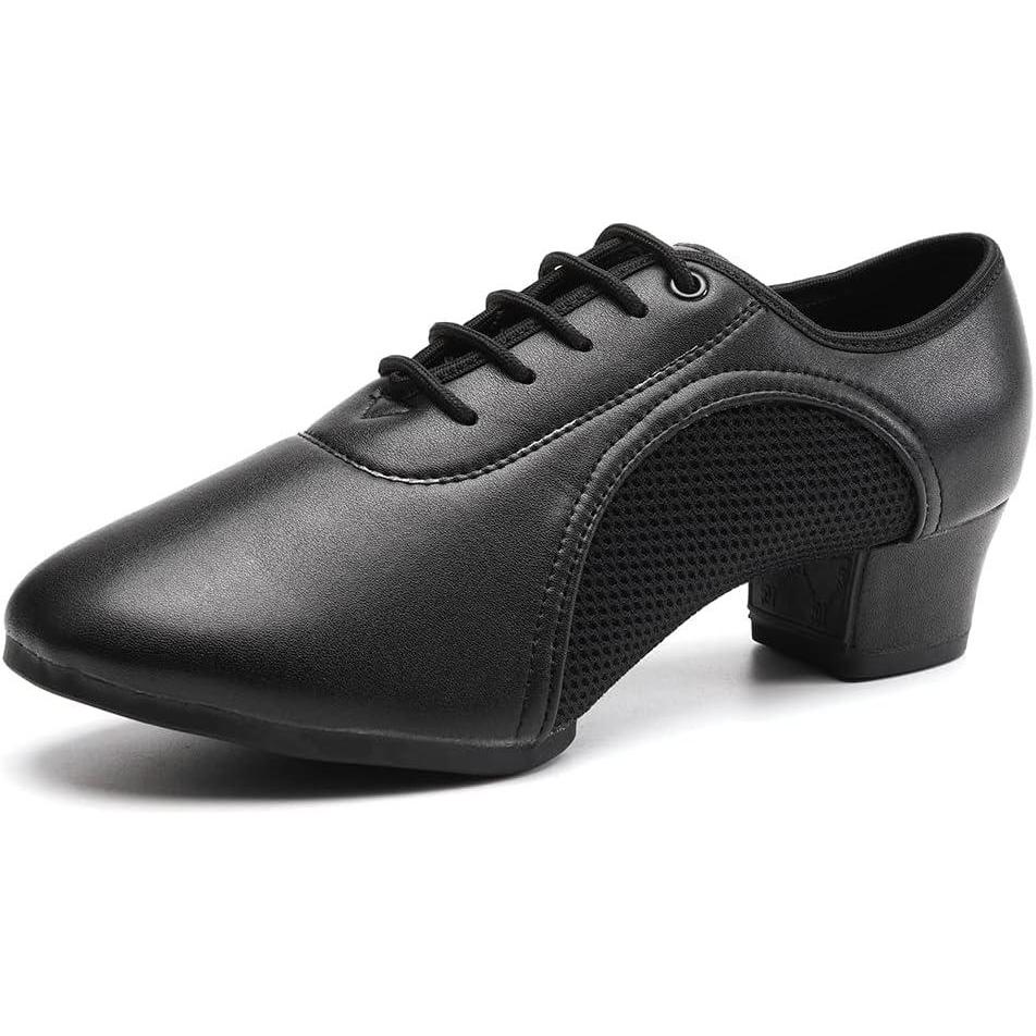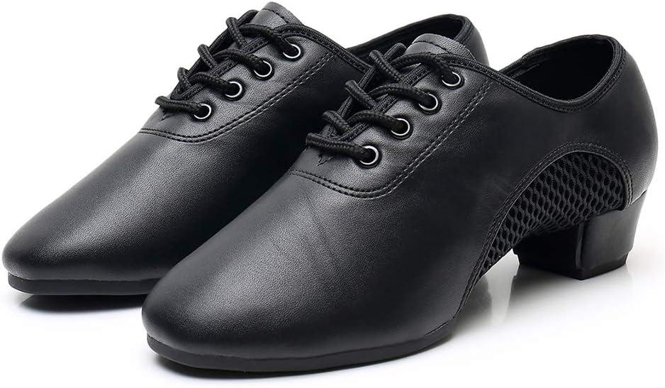 JUODVMP Women & Men Latin Dance Shoes Practice Tie Up Closed Toe Standard Ballroom Teaching Performance Dance Shoes,Model LHD-NJB(Black-2j-3.5-2805-syjd)