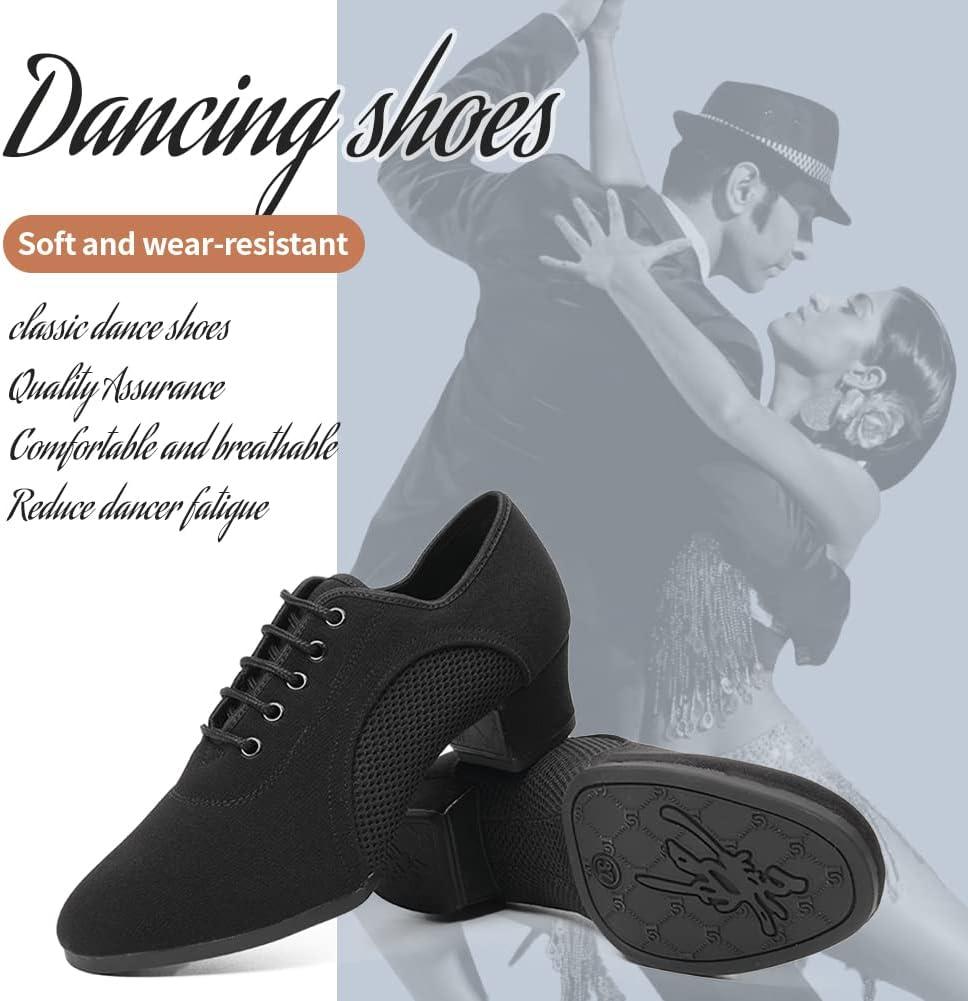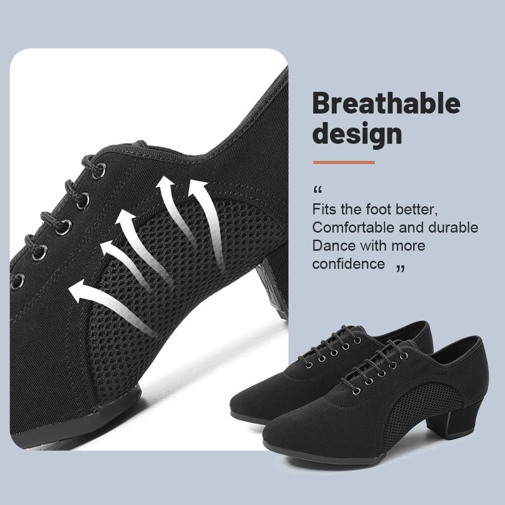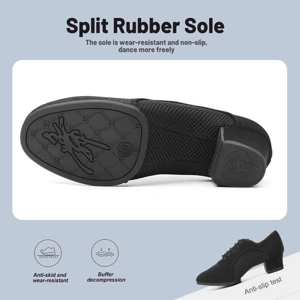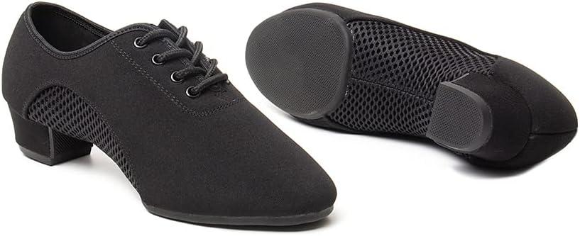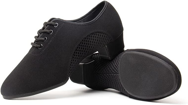 imageJUODVMP Women ampamp Men Latin Dance Shoes Practice Tie Up Closed Toe Standard Ballroom Teaching Performance Dance ShoesModel LHDNJBBlack5cmrubber Split Sole2801gw