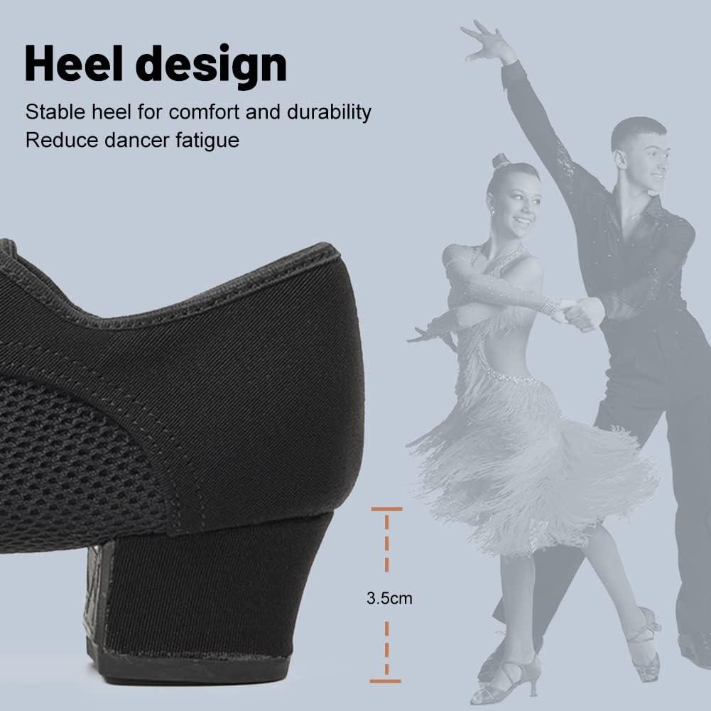 JUODVMP Women & Men Latin Dance Shoes Practice Tie Up Closed Toe Standard Ballroom Teaching Performance Dance Shoes,Model LHD-NJB(Black-3.5cm-rubber Split Sole-2805)