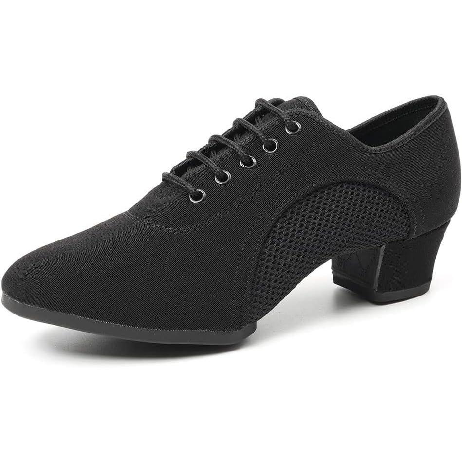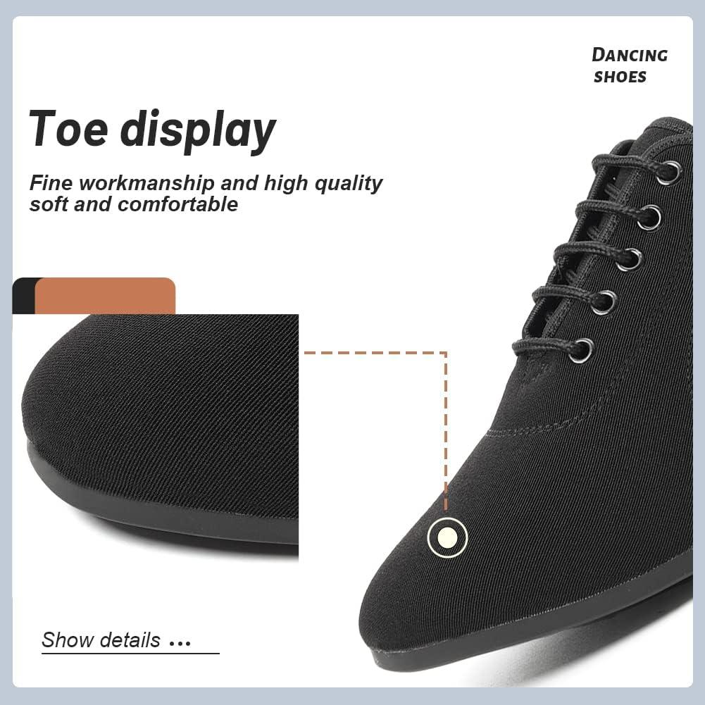 JUODVMP Women & Men Latin Dance Shoes Practice Tie Up Closed Toe Standard Ballroom Teaching Performance Dance Shoes,Model LHD-NJB(Black-5cm-rubber Split Sole-2801gw)