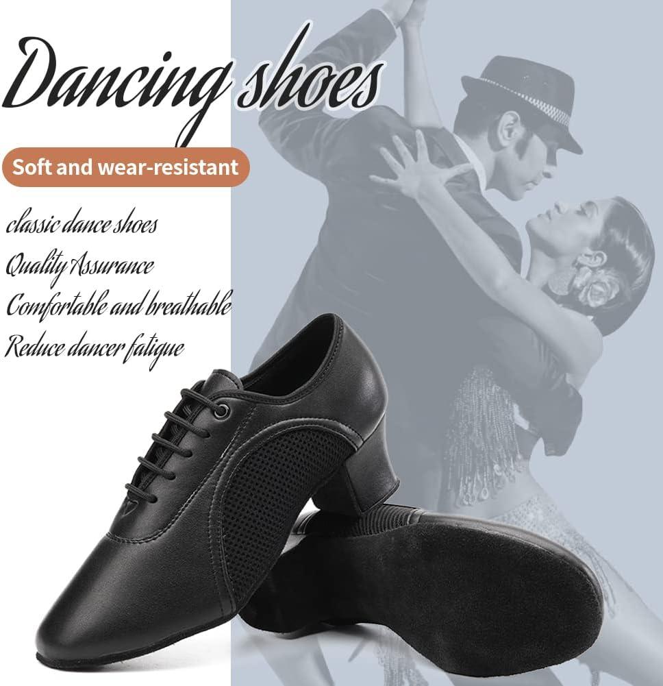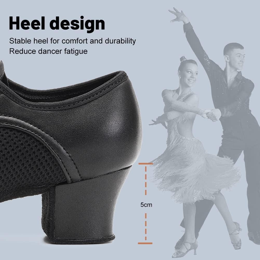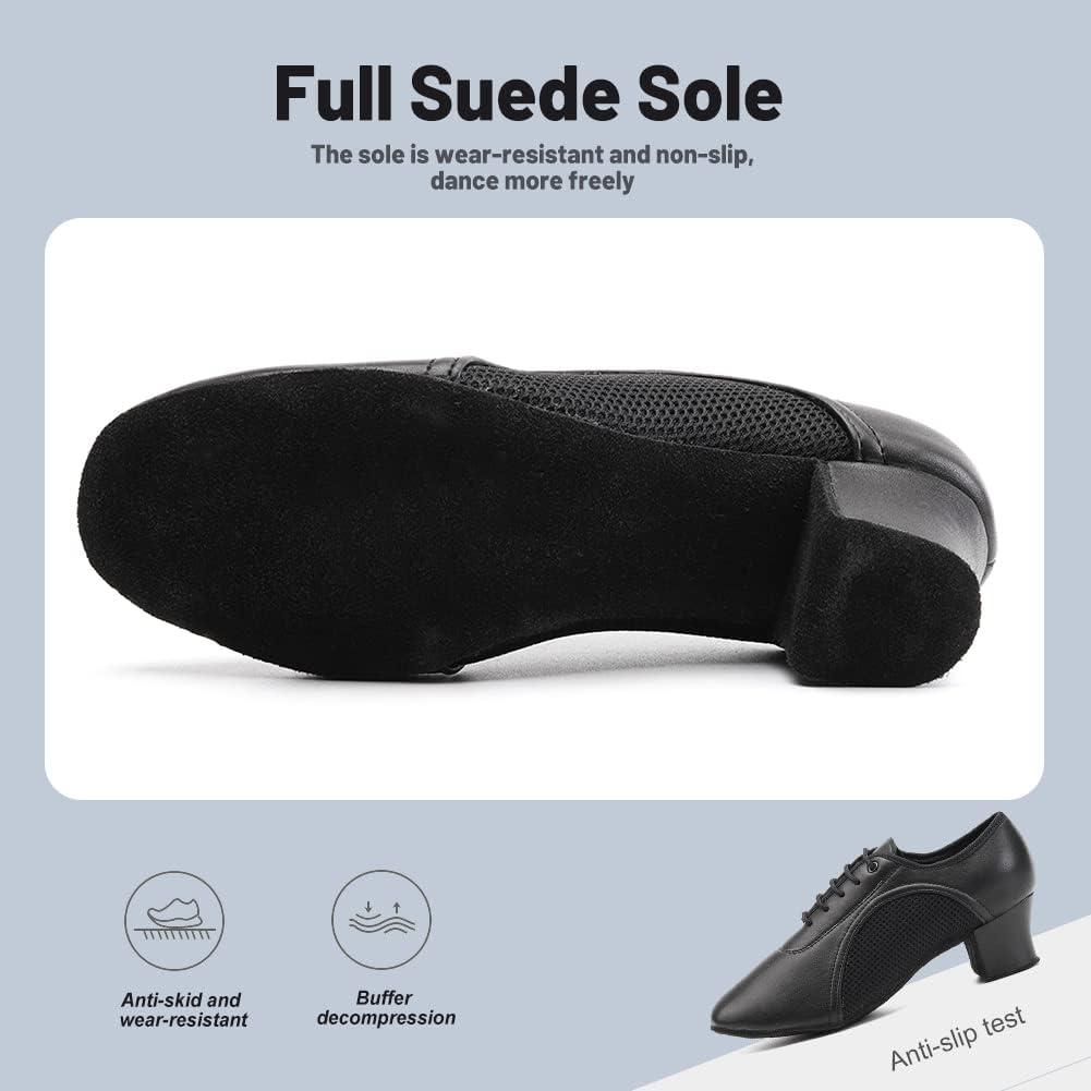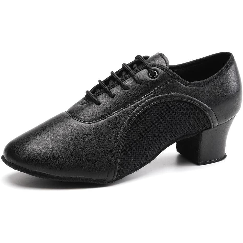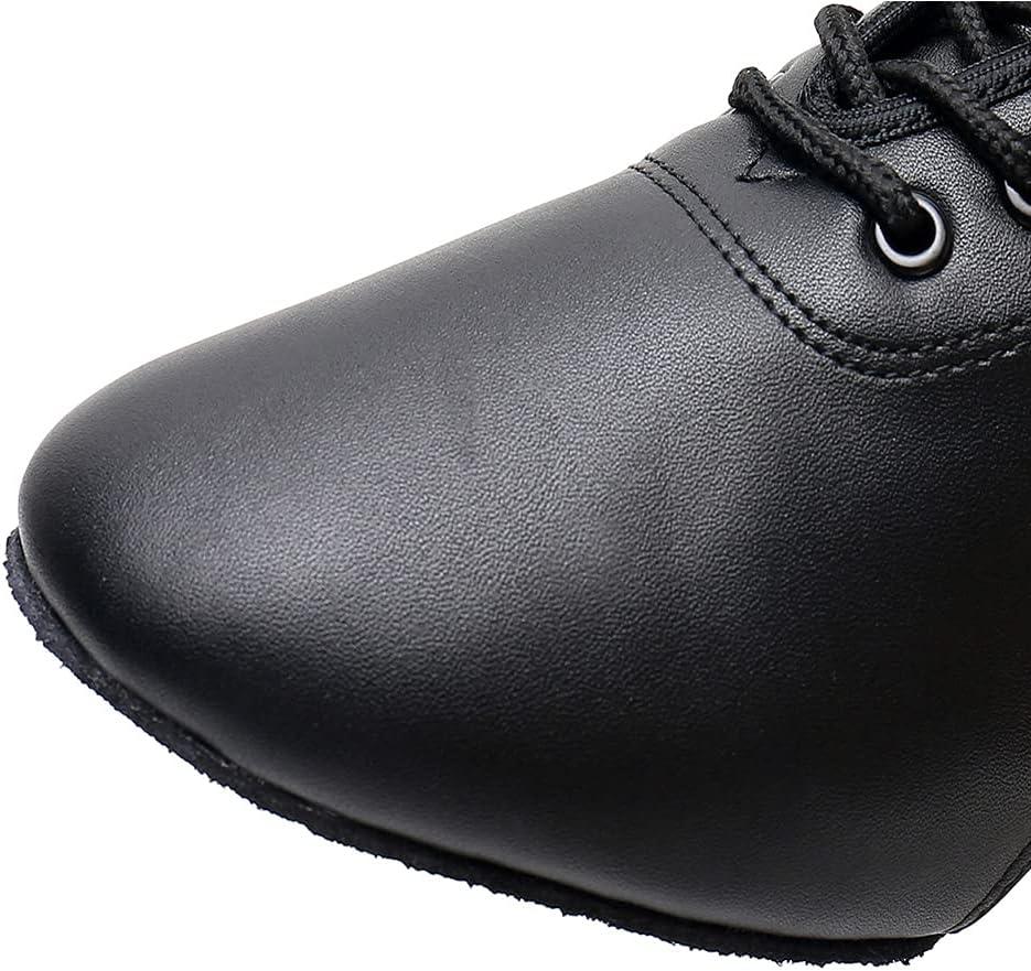 JUODVMP Women & Men Latin Dance Shoes Practice Tie Up Closed Toe Standard Ballroom Teaching Performance Dance Shoes,Model LHD-NJB(Black-5cm-suede Full Sole-2801gw)