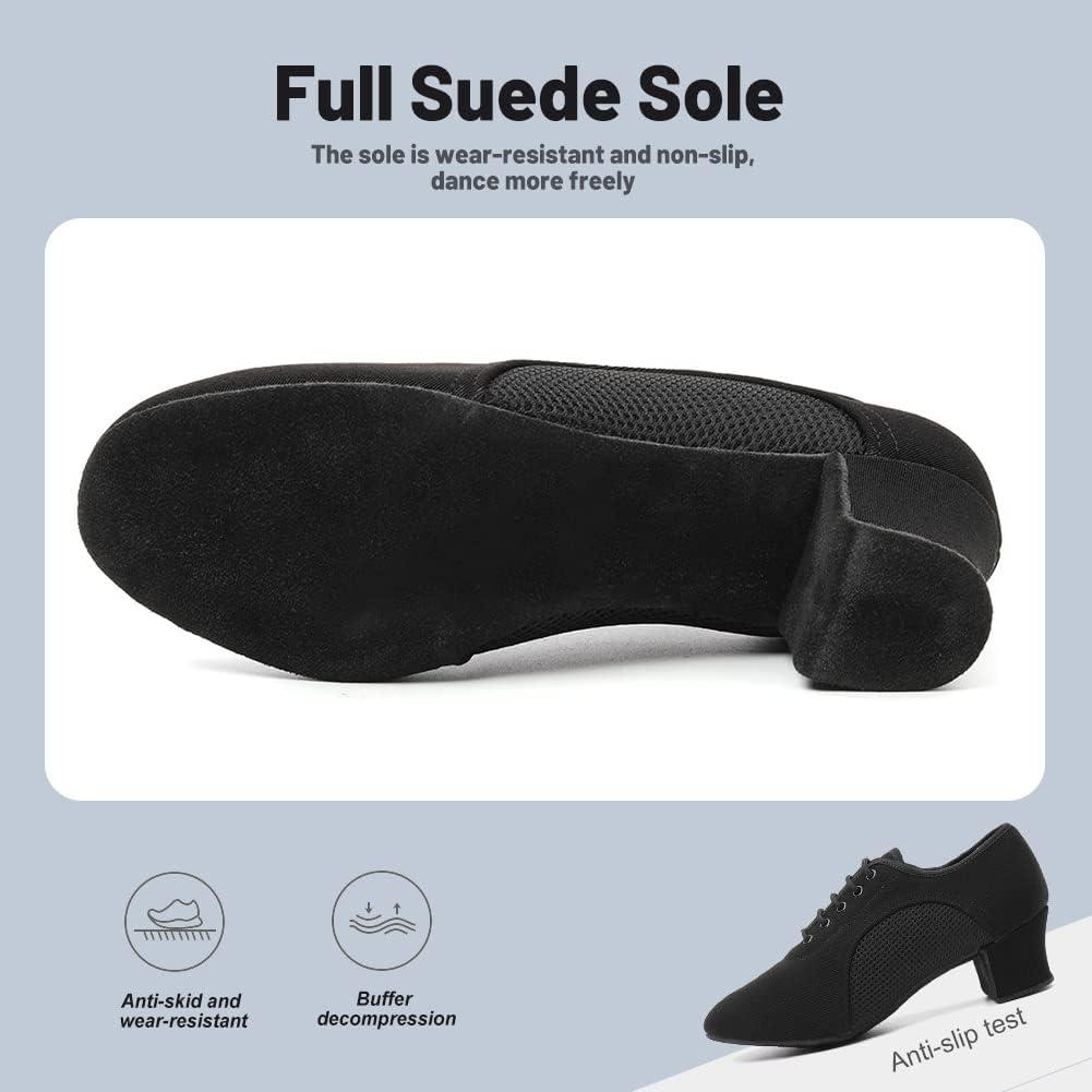 JUODVMP Women & Men Latin Dance Shoes Practice Tie Up Closed Toe Standard Ballroom Teaching Performance Dance Shoes,Model LHD-NJB(Black-5cm-suede Full Sole-2805)