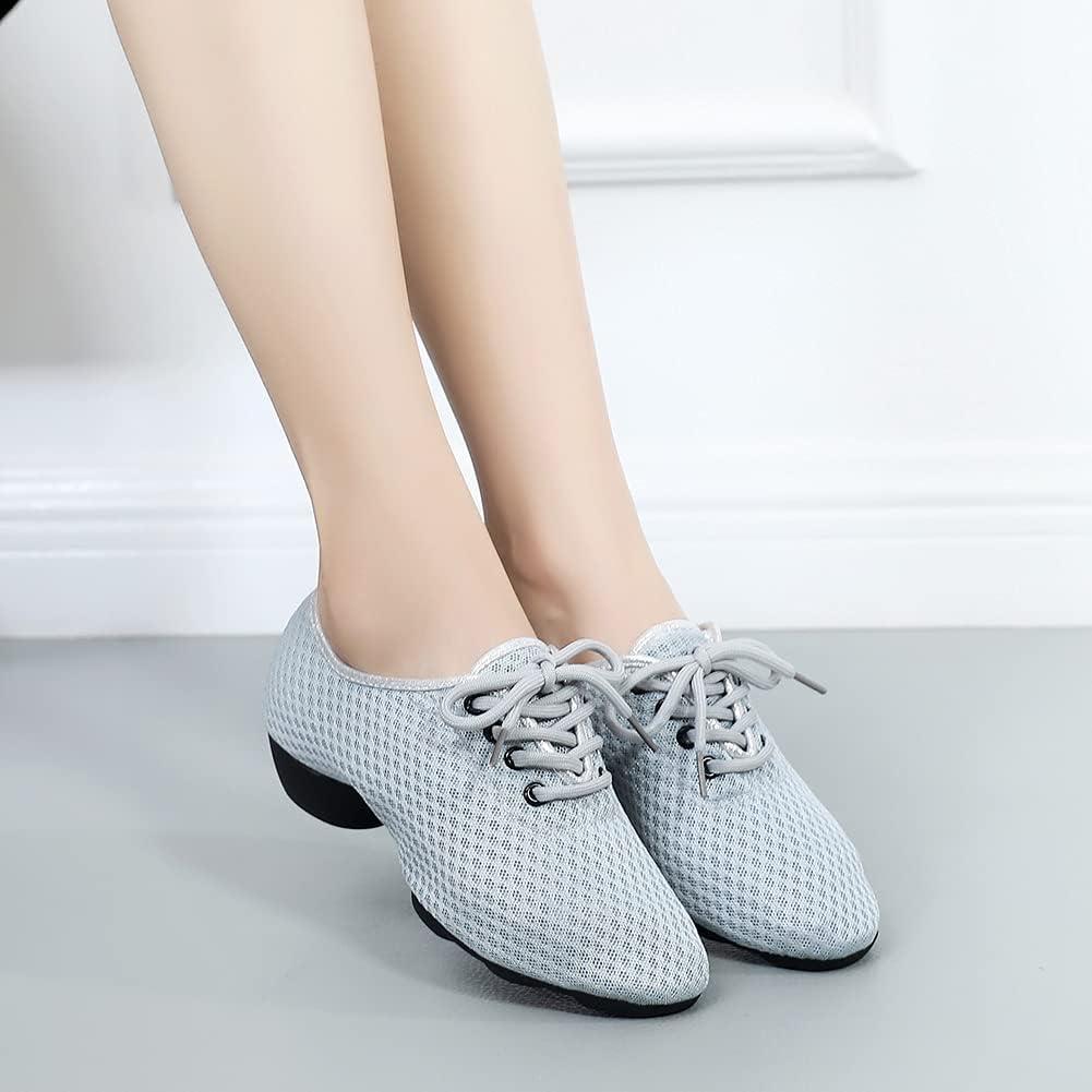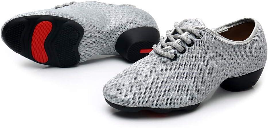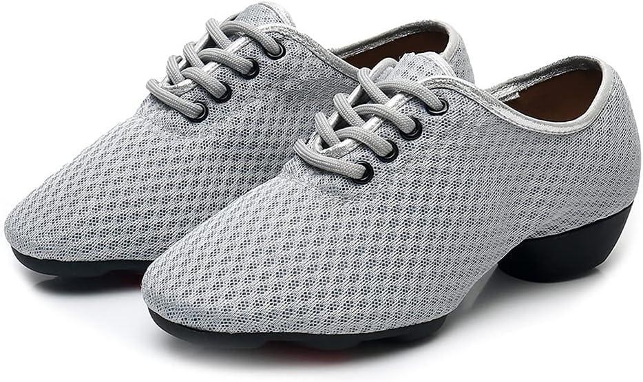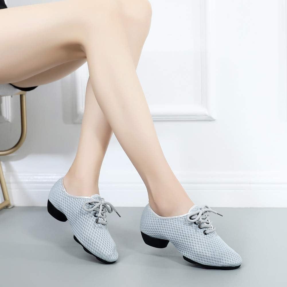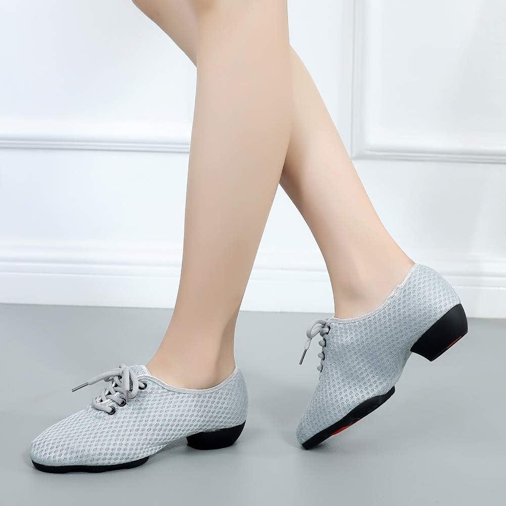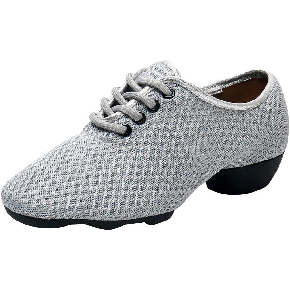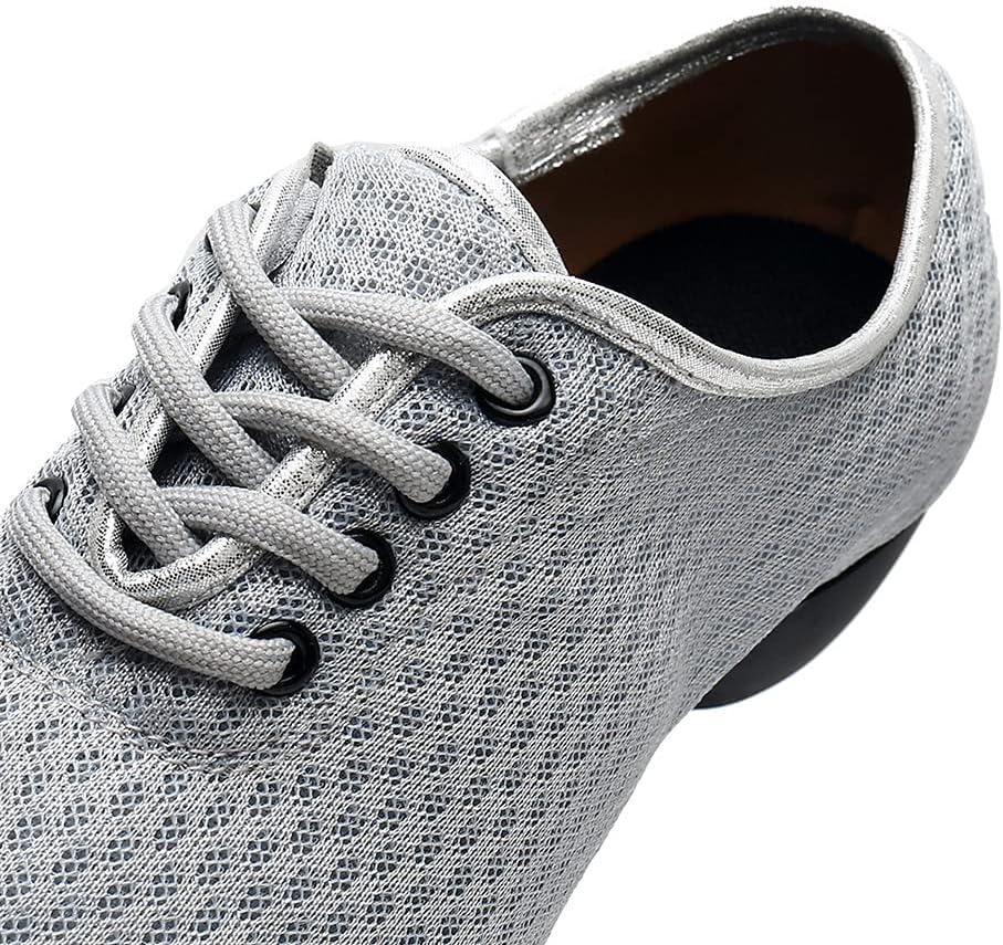 JUODVMP Women & Men Latin Dance Shoes Practice Tie Up Closed Toe Standard Ballroom Teaching Performance Dance Shoes,Model LHD-NJB(Grey-2j-3.5-mf-fzw)